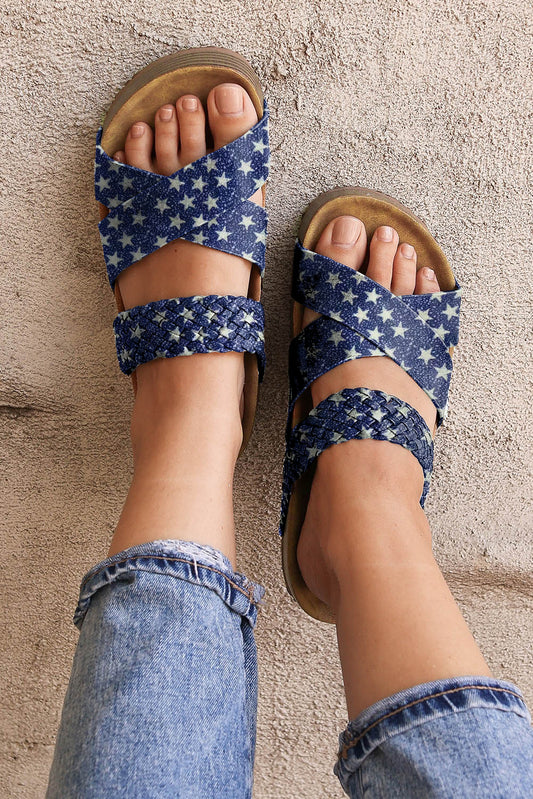 Dark Blue Braided Criss Cross Stars Platform Sandals